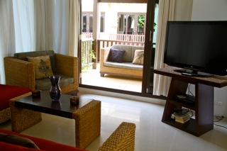 A great family villa, Villa Lotus sleeps comfortably a family of six, whilst retaining a sense of luxury. Elegantly furnished in tropical water hyacinth, the living area boasts both indoor and outdoor sofa areas and an outdoor dining area, ideal for al fresco dining. Decorated in warm colours, with splashes of red and gold, one has the feeling of true modern tropical living.