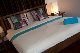 Villa Orchid is a stunning villa, which has been tastefully and lovingly furnished by the owner. Facing our lush tropical gardens, it is laid out over two floors and contains an array of locally sourced furniture, paintings combined with the luxury you would expect from a villa experience. The master bedroom suite is situated on the first floor, and has a large private balcony area, as well as an en-suite bathroom with bath tub and walk-in shower, which is accessed via the walk-in wardrobe, which adjoins the bedroom area. Downstairs, the open-plan living area has a comfortable lounge area, furnished in a cool, minimalist style TV and DVD, a dining area and a kitchenette.