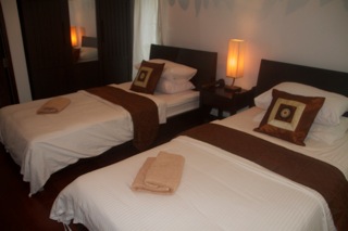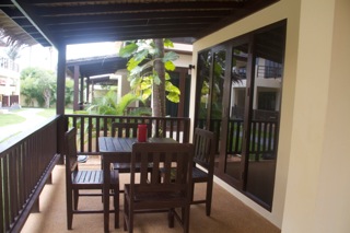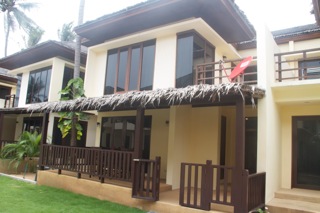 Villa FRANGIPANI is one of our most popular villas with couples and families alike. Facing our lush tropical gardens, it is laid out over two floors and benefits from two double bedrooms (with air-con), both upstairs. The bedrooms are of equal size and share a large bathroom with bathtub and walk-in shower. There is also a second bathroom, with shower on the ground floor. The villa boasts a large open plan style living area, with ceiling fans and large doors, which open to the balcony area and which allow the tropical breeze to cool the villa. The villa has plenty of room for relaxation, both inside and out on the large covered balcony area to the front and side of the property. There is also a dining area and large kitchenette perfect for family meals or entertaining.