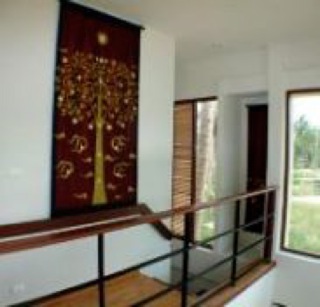 Upstairs, the master bedroom has a master suite with a lavish en-suite bathroom which has a double jacuzzi bathtub and walk-in shower, access via a walk-in wardrobe. The third bedroom, a double, is also upstairs. All bedrooms have aircon.